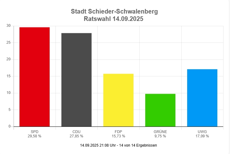 Bei der Kommunalwahl 2025 erreichten wir starke 15,73% der Stimmen, davon 3 Direktmandate in Schieder-Schwalenberg und sind damit die viertstärkste Fraktion!